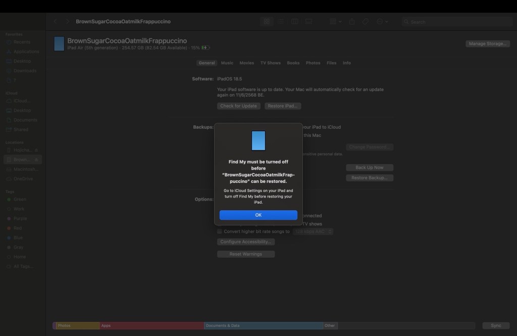 จะมี pop up ขึ้นให้ “ปิด” Find My ในเครื่องก่อน