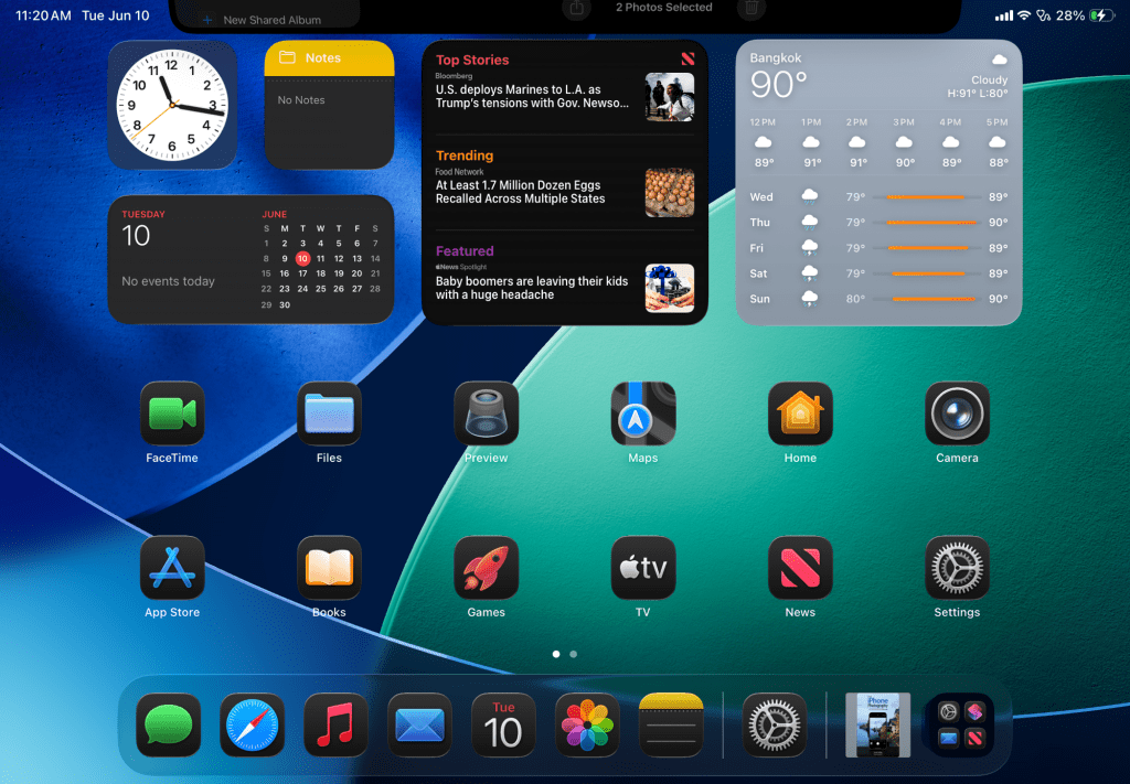 ผมทำใน iPad เสร็จก่อน เลยอยากดูหน้าจอเครื่องเปล่า ของ iPad OS 26 แบบที่ยังไม่เรียก app ที่ backup ไว้คืนกลับ