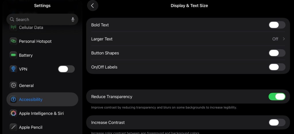 เข้าไปปรับใน Settings ได้ครับ ตรง Accessibility –> Display&Text Size –> Reduce Transparent
