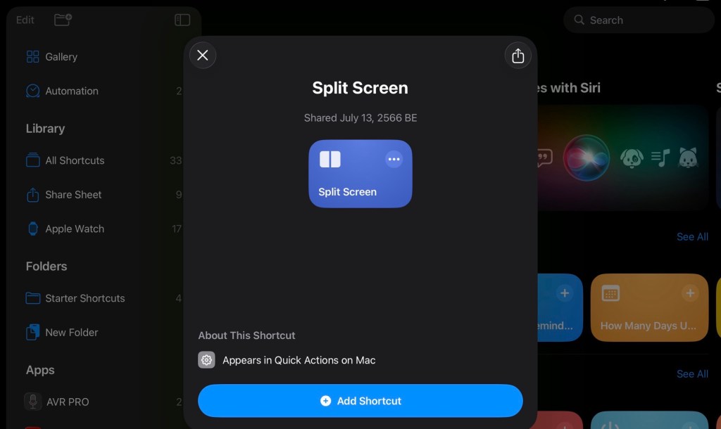 - ติดตั้ง Shortcut ชื่อ Split Screen ครับ