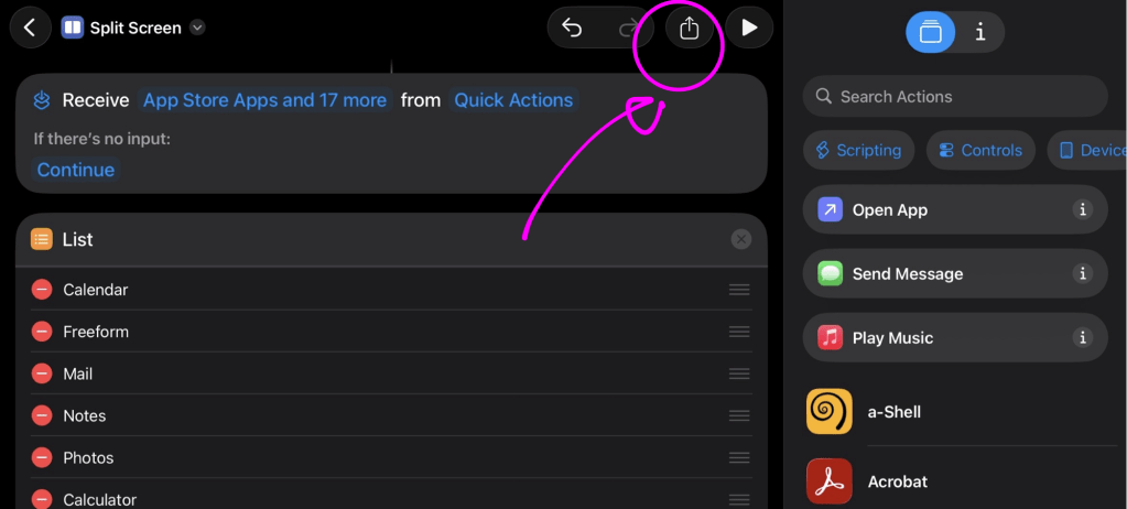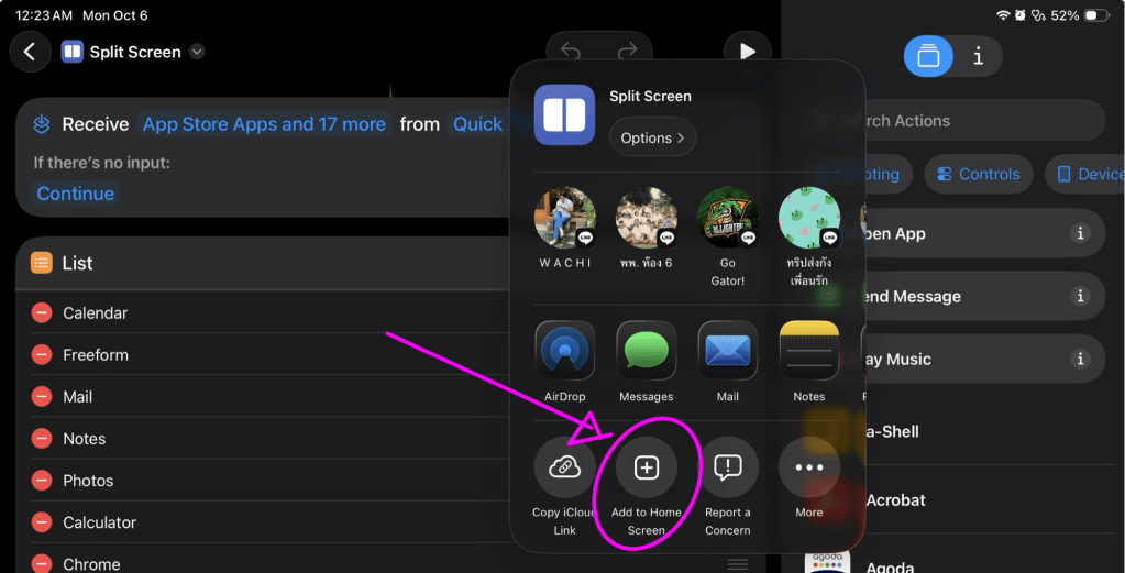 หลักการคือ เราจะสร้าง Shortcut ที่เรียก app ครั้งละ 2 app แล้วเปิดหน้าต่างใช้งาน ในมุมมองแบบ Split view ในครั้งเดียว