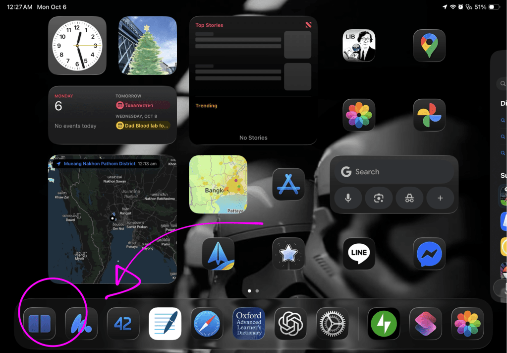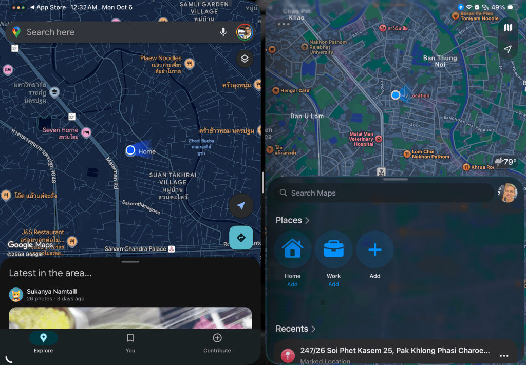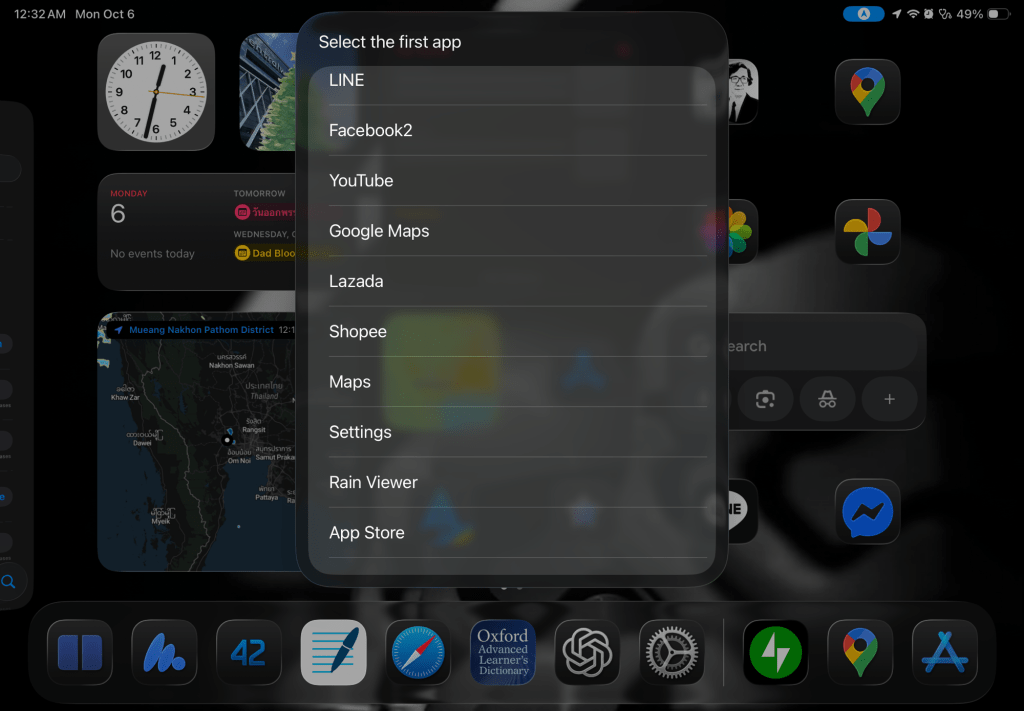 ตัวอย่างแรก ผมต้องการเรียก Google maps และ Apple maps ในมุมมอง Split View ครับ (ตอนนี้ iPad ผม อยู่ที่ iOS 26.1 beta)