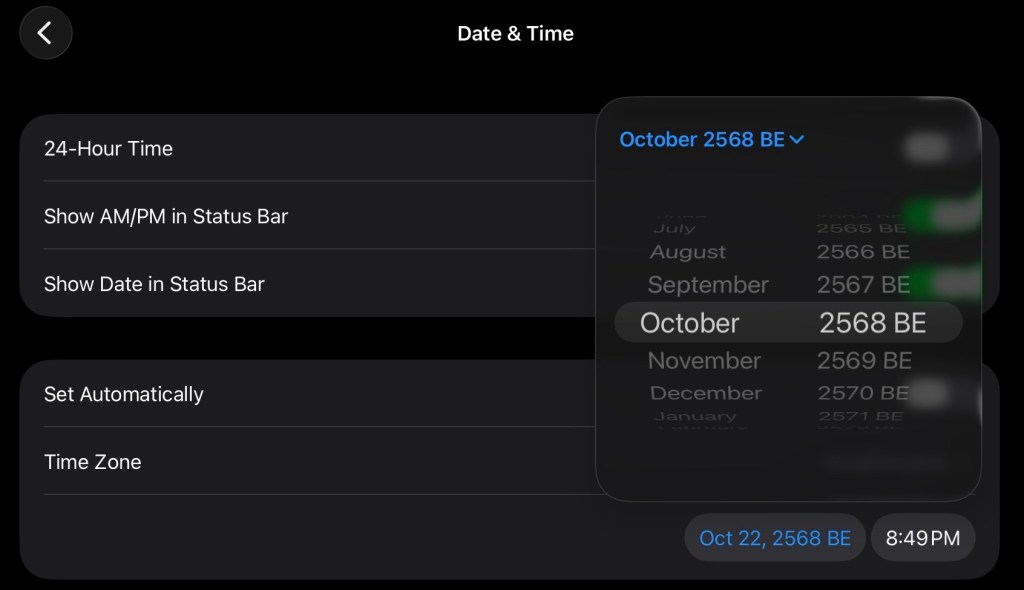 5. เปลี่ยนวันที่ในเครื่องให้เป็น “1 ปีล่วงหน้า” จากวันที่จริง