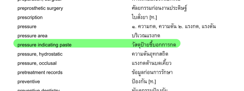 อีกเรื่องที่ได้จากหนังสือเล่มนี้ คือ ศัพท์บัญญัติทันตแพทย์ ที่ไม่คุ้นเคยครับ