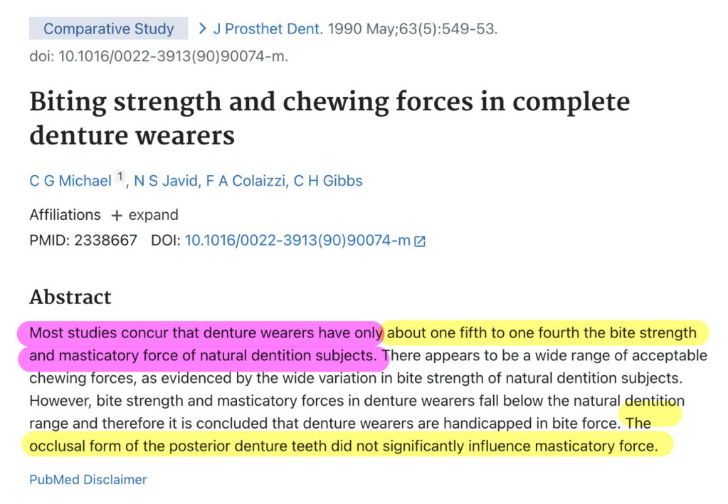 -Efficiency การบดเคี้ยวของ CD จะ = 30% ของ Natural teeth